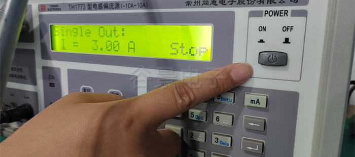 4. 按下測試儀器上的紅色啟動按鈕,開始加載電流。隨著電流的加載,感值會發(fā)生變化,這時需要記錄下這些變化的數(shù)據(jù)。